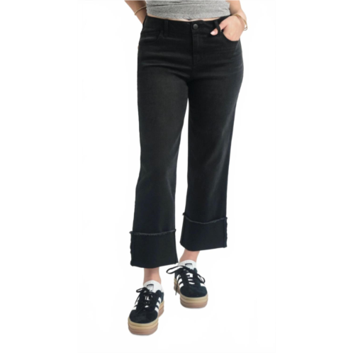 [US] 1822 Denim mid rise black cuffed straight leg jeans