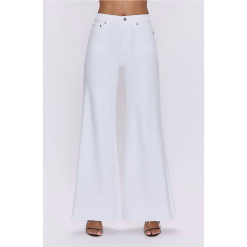 Pair these wide leg jeans with mules, slides or your favorite strappy sandals.Upgrade your wardrobe with the Izzy Mid Rise Wide Leg Jean by PISTOLA, designed in a chic white for a minimalist summer style. These women's jeans feature a regular fit with a mid-rise waist and an exaggerated wide-leg silhouette, complete with a unique kick flare at the hem. Made from a Cotton Blend (69% Cotton, 20% Repreve, 9% Rayon, 2% Spandex), these solid pattern jeans ensure both comfort and durability. Closure - Button closure. Perfect for a Thanksgiving holiday party, this versatile piece is a must-have for the trend-setting individual.