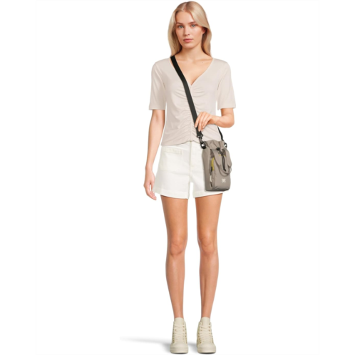 - When was the last time you went anywhere without your water bottle? The Sherpani Izzie crossbody keeps your trusty water bottle at your side so you can go hands-free! With room to hold the essentials, this unique water bottle bag is great for errands, airports, and anything. It is made from recycled polyester material, and features an adjustable and removable crossbody strap with grip handles.