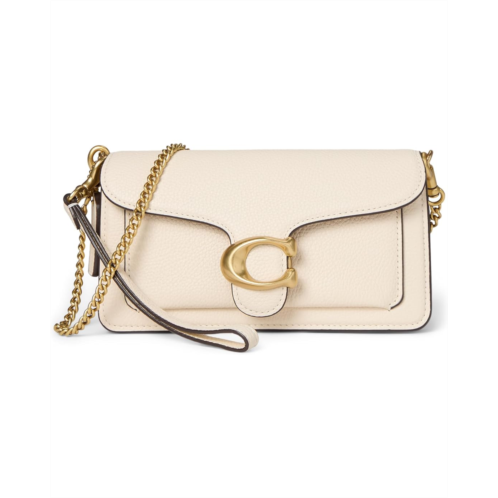 - The COACH Tabby Chain Crossbody Bag 19 is a compact yet versatile piece crafted from polished pebble leather, offering both style and function in a sleek silhouette. Designed with three credit card slots, interior multifunction pockets, and a snap closure with fabric lining, it keeps essentials organized and secure. An exterior slip pocket adds quick-access convenience, while the detachable wrist strap and chain strap allow for multiple styling options.