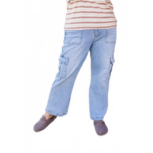 These must-have jeans are fit to perfection.Discover the Salisbury Jean by VERVET BY FLYING MONKEY, an ultimate dad jean crafted for women with a touch of modern style. These high-rise jeans come in a light wash and are designed with convenient cargo pockets and a straight-leg silhouette for a relaxed boyfriend fit. Made from a cotton blend (99% Cotton, 1% Spandex), they ensure both comfort and durability. Closure - Zip closure. Care - Machine wash cold inside out with like colors, do not bleach, tumble dry low, warm iron if needed or opt for dry cleaning.