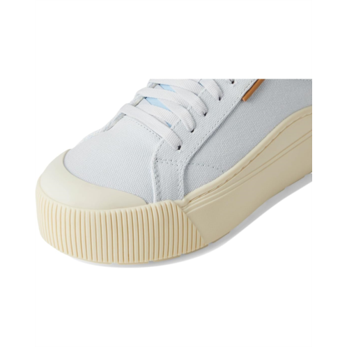 The Dr. Scholl's Time Off Max Lace-Up is an elevated version of the viral women's platform sneakers. The low-top sneakers feature faux leather, canvas, fabric upper, or microfiber upper made from partially recycled plastic bottles. The shoes have a fabric lining, footbed, and topcloth partially made from recycled plastic bottles; partially recycled toe box, and heel counter.