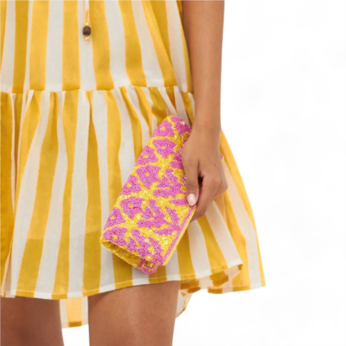 Lipstick, check. Mints, check. Credit card, check. The cutest little bag that holds all of your necessities.This exquisite clutch is hand-beaded with an exclusive OLIPHANT motif, adding a touch of luxury and sophistication to any evening look. The interior is lined with lush satin, providing a soft and protective space for your valuables. The clutch features a secure interior zipper, ensuring your treasures stay safe and tucked away. Measuring 4.2 inches in height and 9.2 inches in width, this elegant accessory is the perfect accompaniment to any formal occasion.