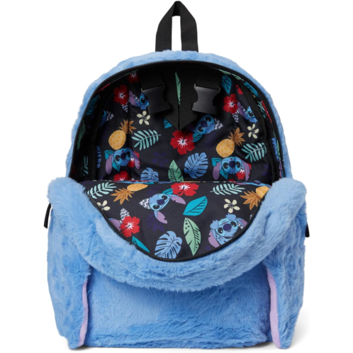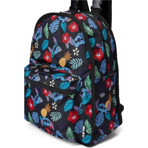 - Switch up your style with this BIOWORLD Kids Disney Stitch Plush Character & Tropical Print 16.5' Flip Pak Reversible Backpack, featuring two fun looks in one. One side showcases a plush design of Stitch with 3D ears, while the other side displays a black all-over print of Stitch and tropical plants. This versatile backpack includes adjustable shoulder straps, a front zipper pocket, and an interior laptop sleeve. Made with polyester and faux fur, it combines functionality with playful design and can be easily wiped clean for care.