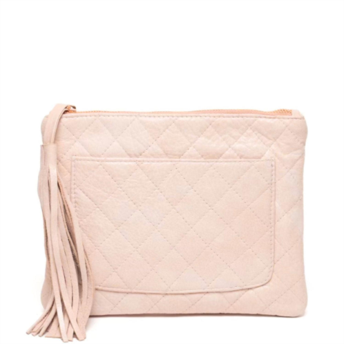 The perfect clutch for an evening out on the town.Quilted leather design with stylish tassel detail. Converts to a crossbody for hands-free convenience. Front pocket ideal for holding your cell phone. Zipper closure. Dimensions - 9.5' x 7.5'. Crossbody strap attached. 100% Italian leather. Made in the USA.