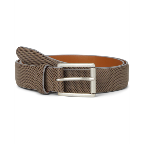 - Looking for a stylish accessory to complete your look? The Johnston & Murphy Brushed Micro Check belt is the perfect choice. Crafted from genuine leather with a brushed micro print detail, this belt exudes luxury and elegance. The antique nickel buckle and single-prong buckle closure add a modern touch to this classic accessory.