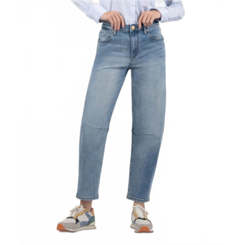 We especially love this cropped jean with a cute pair of slides or sandals.Refresh your denim collection with the Women's Ashley Barrel Jeans by KUT FROM THE KLOTH, designed to impress. These chic blue jeans feature a high-rise, solid pattern with a slightly barrel silhouette, perfect for adding a unique touch to classic style. Equipped with pockets for functionality, they come with a zip closure for a secure fit. Ideal for spring holiday gatherings, these jeans are sure to elevate your ensemble.
