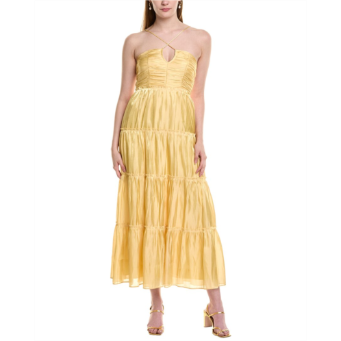 Introducing the exquisite 'JL LUXE Maxi Dress' from the renowned brand JL LUXE. This stunning dress is the epitome of luxury and elegance, perfect for any special occasion. Crafted from 100% polyester with a lined interior of 96% polyester and 4% elastane, this dress offers both style and comfort. The tiered skirt and smocked back add a touch of sophistication, while the self-tie shoulder details add a subtle charm. Whether you're attending a wedding or a formal event, this gold-colored dress is sure to turn heads. The model is 5'10 and is wearing a size small, with measurements that may vary slightly by size. Hand wash recommended. Imported for your convenience and style. Elevate your wardrobe with the JL LUXE Maxi Dress today!