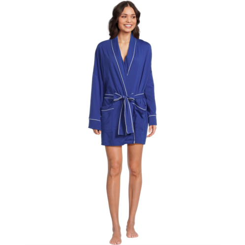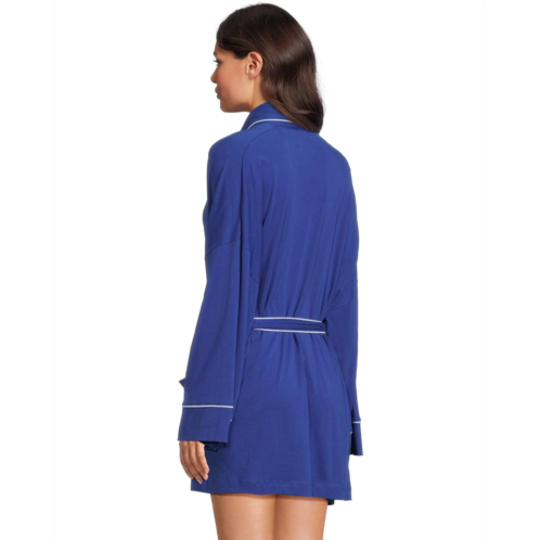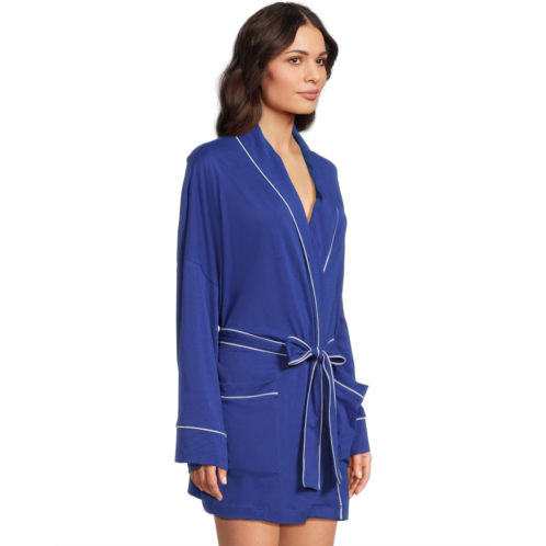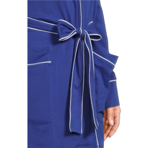 The Skin Carlotta Robe is made from organic cotton fabric that takes your comfort to the next level. It features an open front design with a tie waist closure for easy wear. This cotton robe is styled with long sleeves, a collared neckline, and a straight hem. Offering a non-sheer silky touch, this open-front robe has a contrast piping detail for an eye-catching appeal.