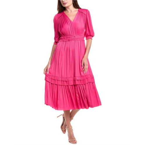 Style: tulipClosure: slip onSleeve Length: 34 sleeveHem: tier hemFit: fit and flareNeckline: v neck