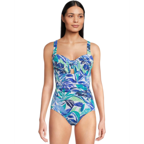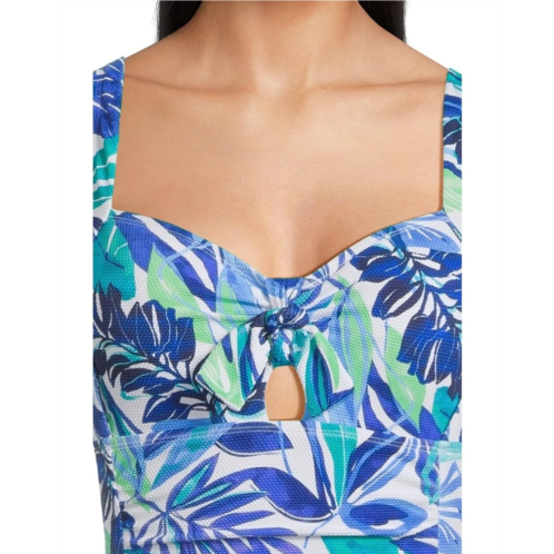 Get vacay ready and look flawless beachside in the Tommy Bahama Island Cays Marina Tie Fnt 1Pc. This pull-on style swimsuit features a sweetheart neckline with tie front detailing and keyhole opening, adjustable shoulder straps, allover print, and moderate rear coverage.