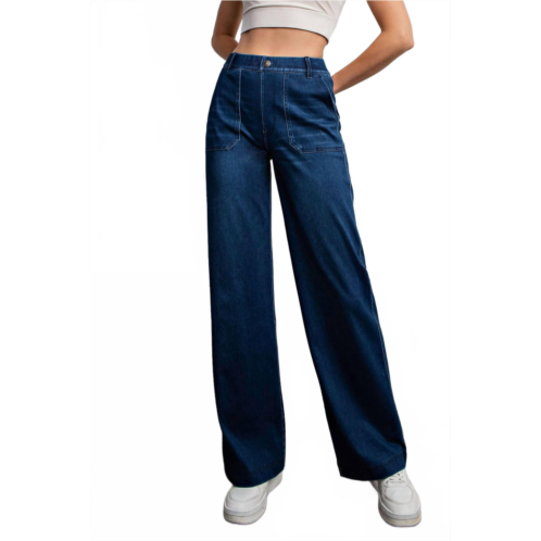 Experience the perfect blend of fashion and comfort with the Cotton Stretch Twill Wide Leg Pants by RAE MODE. Featuring a high rise and relaxed fit, these pants are crafted from a cotton blend composed of 58% cotton, 27% polyester, and 15% spandex. The pull-on closure, practical pockets, and versatile blue color make them an ideal choice for travel or any occasion. Easy to care for, simply machine wash and tumble dry to maintain their dark wash and wide-leg style.