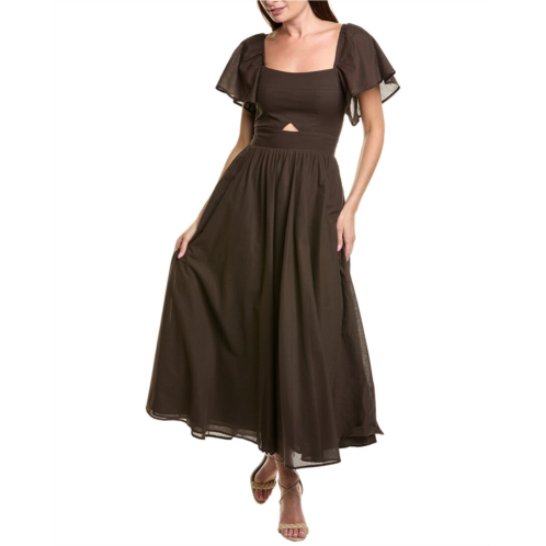 Introducing the BGL Midi Dress, a stunning piece from the renowned brand known for its classic business style mixed with daring individuality. This chic dress comes in a rich chocolate hue and features flutter sleeves, a smocked back, and a cutout at the front for a touch of modern flair. Complete with side seam pockets, this midi dress measures approximately 53 inches from shoulder to hem. The center back zipper ensures a perfect fit, while the 100% cotton fabric is both comfortable and stylish. Hand washable and imported, this BGL Midi Dress is a must-have for any fashion-forward woman. Model is 5'10.5 and is wearing a size 2, with measurements that may vary slightly by size. Elevate your wardrobe with this versatile and effortlessly chic dress today.