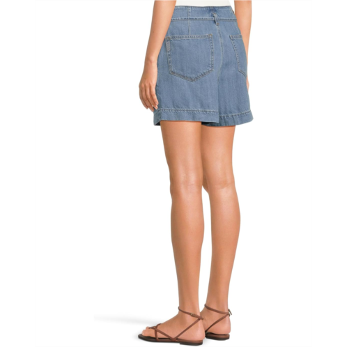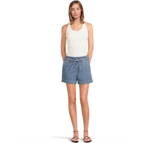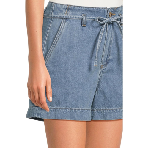 Style your warm weather wardrobe with the chic and polished Paige Anessa Shorts with Waist Tie in Tranquility. These shorts are crafted from super soft and lightweight denim in the perfect light wash. The flattering high-rise shorts comes with a waist tie that goes across waist through the belt loops and is secured by zip-fly and button closure.