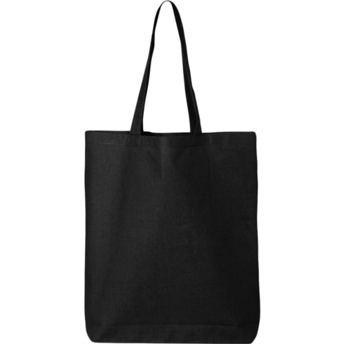 6 oz./yd (US), 10 oz/L yd (CA), 100% cotton. 20' self-fabric handles. 9' handle drop. Bottom gusset.
