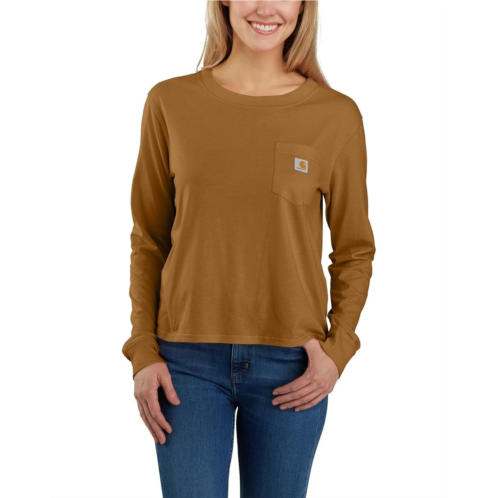 [US] Womens Carhartt Loose Fit Lightweight Long Sleeve Crew Neck Pocket T-Shirt