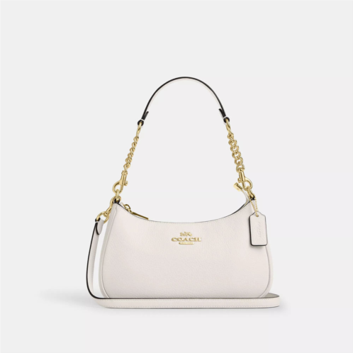Refined pebble leather Inside multifunction pocket Zip-top closure fabric lining Detachable handle with 8 1/2 drop Detachable strap with 22 3/4 drop for shoulder or crossbody wear 9 1/2 (L) x 6 (H) x 3 (W) Style No. CV934 | Coach Outlet Teri Shoulder Bag - Red
