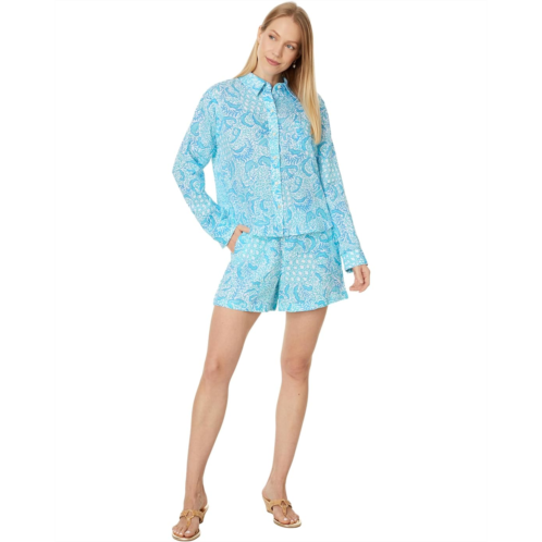 Get ready to soak up the sun in style choosing the Lilly Pulitzer Croix Linen Shorts! These must-have shorts boast a pull-on style and easy fit for effortless wear all season long. The high-rise waist and elasticized waistband with drawstring provide a customizable fit, while the two hand pockets offer convenient storage for your essentials. And with the playful allover floral print, these shorts are sure to become your new favorite warm-weather staple.