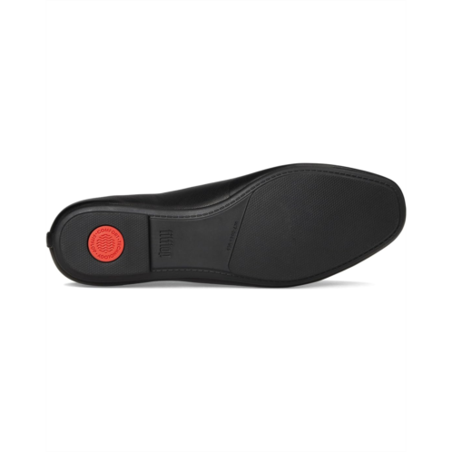 - A blend of style and biomechanics makes the FitFlop Delicato Pearls-And-Crystal Soft-Leather ballerinas some of the best in the business. They've swapped out the style's rounded toe design for a softly squared version, complete with a slender strap across the front to help hold your foot in place (and prevent your toes from bunching to keep them on). The sparkling faux-pearl and crystals clustered at the strap subtly contrast the buttery-soft, smooth-leather silhouette. And on the inside? The brand's signature smart technology. Their high-rebound Dynamicush pockets are craftily hidden within the flat sole, making sure it's cushioned enough to keep your feet comfortable all day. These ballet shoes are made of a leather upper and polyester lining. The leather insole is specially contoured to the shape of your foot, too, so it works with your body's natural movement.