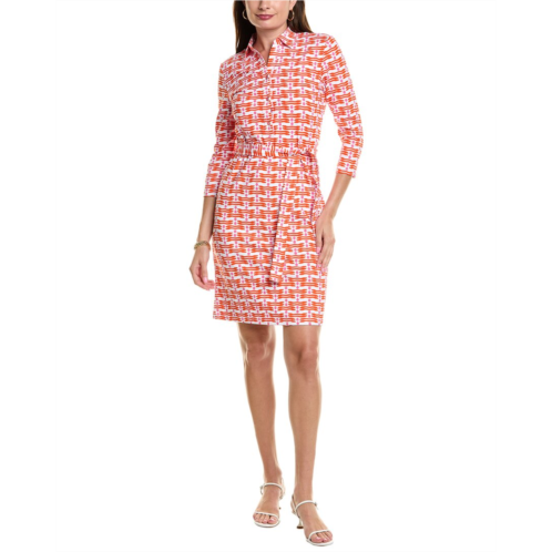 Introducing the J.McLaughlin Calla Catalina Cloth Dress, a stunning addition to your wardrobe from the renowned brand known for their traditional sportswear with stand-out fabrics and prints. This dress comes in a vibrant red and pink edition dot with 3/4-length sleeves and a side tie for added flair. The dress measures approximately 38 inches from shoulder to hem and features a button placket for easy wear. Made from 91% nylon and 9% spandex, this dress is both stylish and comfortable. Hand wash recommended. Imported. Model is 5'10.5 and is wearing a size small. Please note that measurements may vary slightly by size. Elevate your look with this chic and versatile dress from J.McLaughlin.