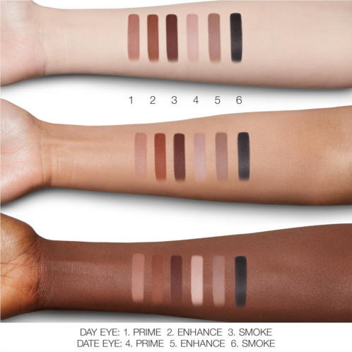 - 6 x 0.04 oz/ 1.2 g Day LookPrime (light brown nude), Day LookEnhance (rich warm caramel), Day LookSmoke/Define (deep smokey brown), Date LookPrime (cool neutral nude), Date LookEnhance (soft taupe), Date LookSmoke/Define (smokey black)