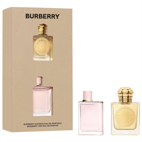 About the Fragrance: BURBERRY Her Eau de Parfum blends juicy berries with luminous jasmine and violet, wrapped in warm amber and musk. BURBERRY Goddess Eau de Parfum is a bold, vegan gourmand featuring a unique trio of vanilla notes for a rich, empowering finish.