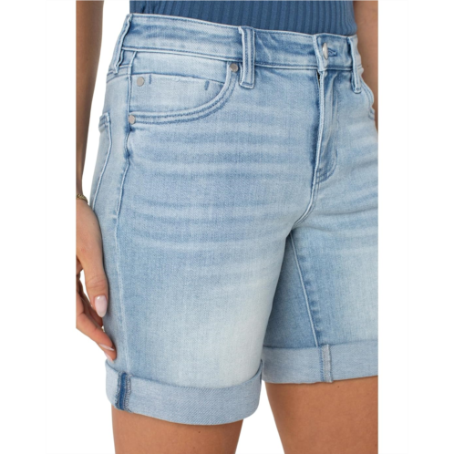 Comfort meets cool: The Marley Girlfriend Shorts from Liverpool Los Angeles are the epitome of effortless style. Designed with a flattering classic fit, these mid-rise shorts feature a zip-fly with button closure and belt loops for a tailored yet comfortable feel. Crafted from super-soft stretch denim, the Marley provides the perfect balance of flexibility and texture. With five pockets for practicality, and a rolled cuff that adds a trendy twist, these shorts fit slimmer than a boyfriend cut but still offer plenty of legroom for a laid-back vibe.