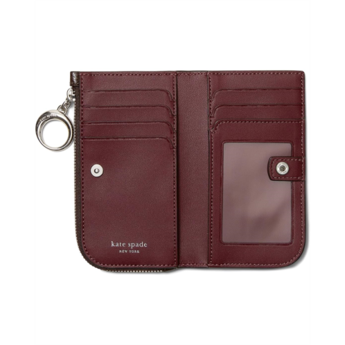 - Keep your cards and cash securely stored in the Kate Spade New York Halo Glazed Leather Small Slim Bifold Wallet. The bifold leather wallet features a zippered pocket, credit card compartments, an ID pocket, brand logo hardware at the front, and a snap-button closure for enhanced security.