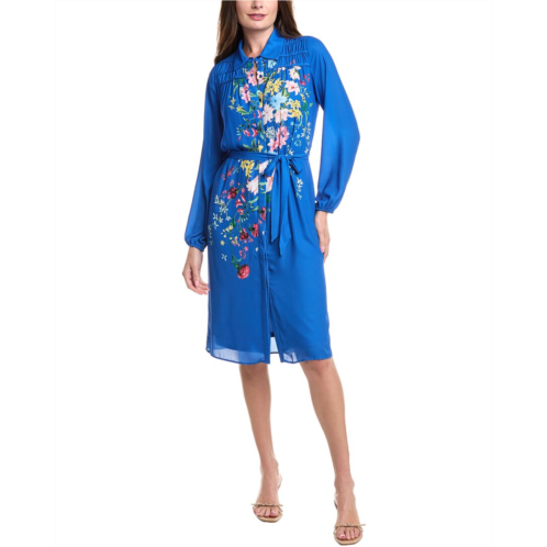 [US] T Tahari smocked yoke shirtdress