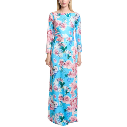 Introducing the Rene Ruiz Off-The-Shoulder Gown, a stunning piece from the renowned brand Rene Ruiz. This beautiful gown features a captivating Pink Blue Floral Blue pattern, with design details including a center back vent at the hem. Made from high-quality 100% polyester, this gown measures approximately 62 inches from shoulder to hem. The gown also includes a center back zipper with hook-and-eye closure for easy dressing. Dry clean only. Imported. Elevate your evening look with this elegant and feminine gown from Rene Ruiz.