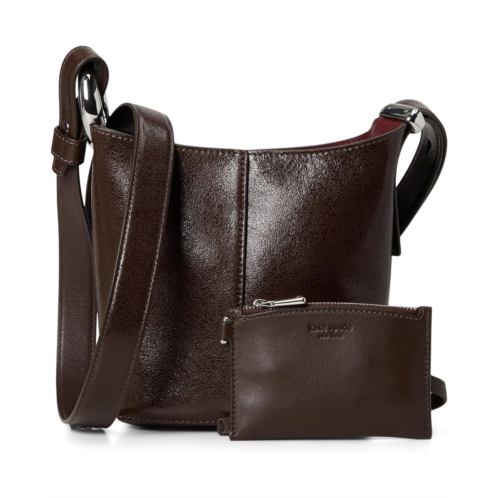 - Carry essentials comfortably in the Kate Spade New York Halo Glazed Leather Mini Bucket Bag that serves both style and functionality. Crafted with glazed leather with an adjustable and detachable crossbody strap, it is easy to carry around. The bag features an internal detachable zipper pouch and a dog clip closure. It can be worn as a wristlet, top handle satchel, shoulder bag, or crossbody bag.