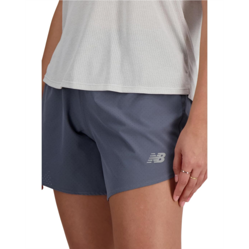 Sporty and stylish, the New Balance Women's RC Short 5' are a must-have in your athleisure collection. The shorts are designed with a soft fabric, elasticated waist, back pocket for storage, and a dolphin hem.