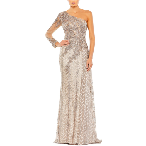 Introducing the elegant and stylish Mac Duggal Embellished A-Line Gown for women. This stunning gown is true to size and comes in a beautiful taupe color/pattern. The gown features design details such as embellishments and one long sleeve, making it perfect for any formal occasion. With a center back zipper for easy wear, this gown measures approximately 61 inches from shoulder to hem. Made with 100% polyester and lined with 100% polyester, this gown is easy to care for with spot cleaning and laying flat to dry. Imported for high quality, this Mac Duggal gown is a must-have for your wardrobe.
