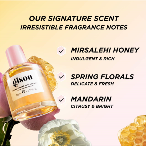 What it is: A delicate hair perfume, enriched with Mirsalehi honey, formulated to refresh and scent the hair with Gisou’s signature honey-infused fragrance.