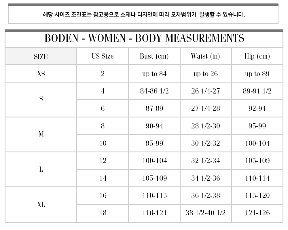 제품라인이나 디자인, 소재, 시즌별로 사이즈오차는 발생됩니다.