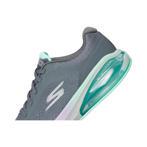 Stride in air-cushioned comfort with Skechers Performance GO WALK Air 3.0. This athletic bungee sneaker features an engineered mesh upper, fabric lining, breathable Skechers Air-Cooled Goga Mat insole, and visible Skech-Air midsole. Featuring round toe design, lace-up closure, and brand logo detailing.