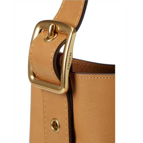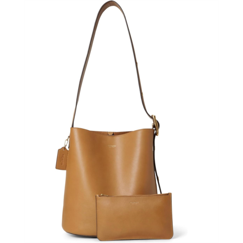 - Whether you're getting ready for work or going out shopping, this COACH Bleecker Bucket Bag is the perfect choice. Made from cow split leather, this bucket bag features a removable zippered pouch, a dogleash clip closure, and an adjustable strap. It has an inside snap pocket for convenient storage and can fit a 13' laptop.