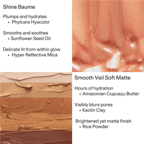 What Else You Need to Know: The creamy Smooth Veil Soft Matte formula creates a soft-focus finish with medium-buildable coverage, while the Shine Baume gives you a luminous glow. Formulated to be used together for a unique three-dimensional effect.