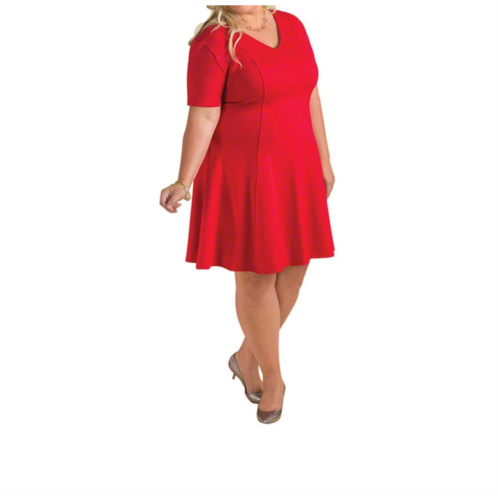 [US] On The Plus Side short sleeve v-neck ponte fit and flare dress - Plus size in bright red
