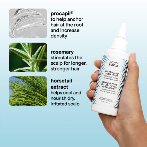What Else You Need to Know: The BondiBoost Procapil Hair Tonic with three percent Procapil is a patented blend of vitamin-enriched matrikine, apigenin, and oleanolic acids. This powerful combination helps fight the follicle aging process to target hair loss, strengthen from the roots, and anchor the hair follicle.