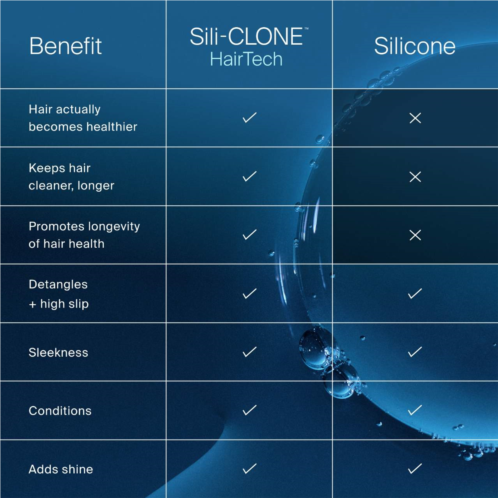 - Sili-CLONE HairTech: Engineered to mimic the five key benefits of siliconedetangling, slip, sleekness, conditioning, and shinewhile delivering fuller-looking hair.
