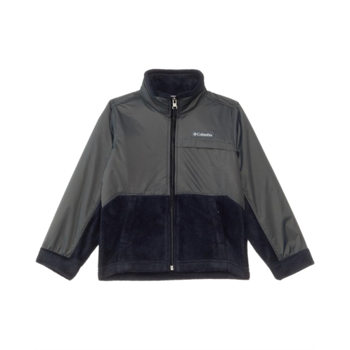- Featuring Omni-Shield advanced repellency overlay for added comfort and protection, the Columbia Kids Steens Mountain II Overlay jacket keeps your kid comfortable and dry all day. The polyester MTR filament fleece fabric of the jacket offers long-lasting warmth while the zippered front closure locks out the elements. This zip-up jacket is designed with long sleeves, a collared neckline, and a straight hem.