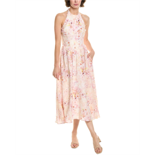 Introducing the stunning 'Bardot Kylen Printed Midi Dress' in a beautiful pink floral pattern. This dress is approximately 45 inches from shoulder to hem, perfect for a chic and feminine look. The design features a lace construction, self-tie halter neck, and boned bodice for a flattering silhouette. Complete with a center back zipper closure for easy wear. Made from 100% ramie, this dress is hand washable and imported. Elevate your wardrobe with this gorgeous dress from Bardot.
