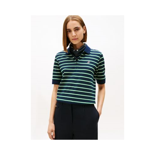 Tommy Hilfiger women's polo. Our polo is made from a pique weave known for its subtle textured finish that adds dimension and breathability. The lyocell-cotton stretch fabric has a soft, smooth hand feel to take you through the day in comfort. Part of our Tommy Jeans collection.