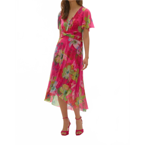 [US] Joseph Ribkoff crinkle and mesh floral print dress in multi