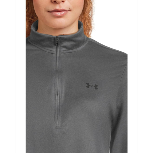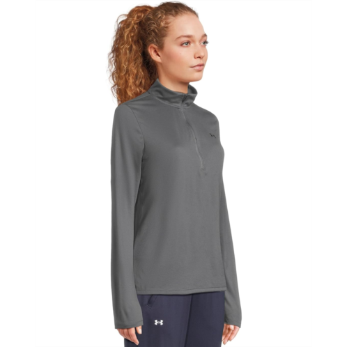 Stay comfortable while enjoying fun movements at outdoors by wearing Under Armour Tech 1/2 Zip Solid tee. It features a collared neckline with quarter front zipper closure, long sleeves, and straight hem. A signature logo on the left chest gives it a sporty look.