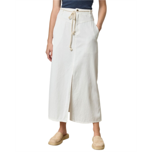 Elevate your summer wardrobe with the Lilla P Yoke Waist Maxi Skirt. This white maxi skirt features a removable rope cord belt, front and back pockets, and a front slit for added style. Made from 100% cotton, this skirt is comfortable and easy to care for with machine washable instructions. The zip fly with button closure adds a polished touch to this casual yet sophisticated piece. Transition from day to night with this versatile skirt that measures approximately 36 inches at the back and 35 3/4 inches at the front from waist to hem. Imported with quality craftsmanship, Lilla P offers understated luxury for a casual lifestyle.