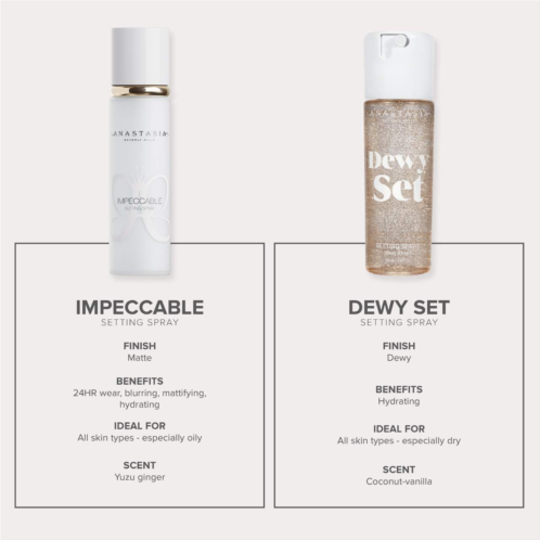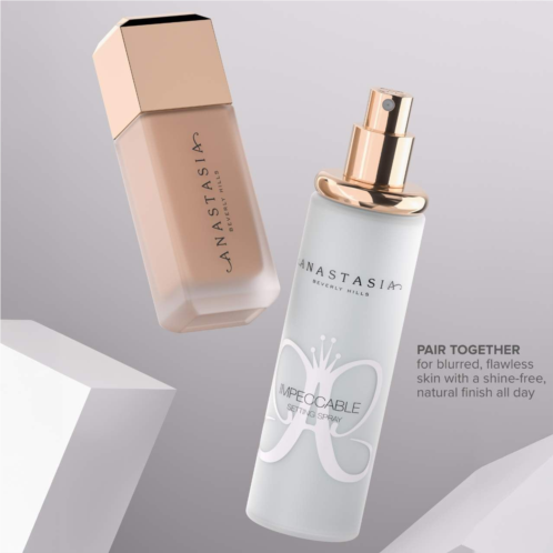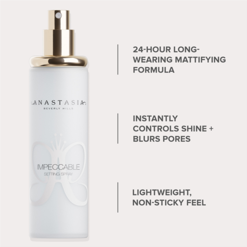 What Else You Need to Know: Introducing Impeccable Setting Spray: Lock in velvety-matte, smooth makeup for 24 hours and achieve a seamless, natural, shine-free finish all day. This hydrating, blurring formula reduces the appearance of pores, fine lines, and wrinkles while keeping makeup in place.