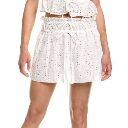 Introducing the GANNI Light Broderie Anglaise Mini Skirt in bright white, perfect for adding a touch of femininity to your wardrobe. This skirt features delicate eyelet embroidery and a ruffled drawstring waist for a flirty and playful look. Made from 100% organic cotton, this skirt is not only stylish but also sustainable. With a slip-on styling and a length of approximately 16 inches from waist to hem, this skirt is easy to wear and versatile for various occasions. The model is 5'9.5 and is wearing a size 36, but please refer to the size chart for US conversions as sizes may vary slightly.Please note that this item is unlined for a lightweight feel. Machine washable and imported, this skirt is a must-have for any fashion-forward woman. Rest assured, our products are 100% genuine and sourced from trusted independent suppliers, guaranteeing the authenticity of every product sold on our site. Elevate your wardrobe with the GANNI Light Broderie Anglaise Mini Skirt today!