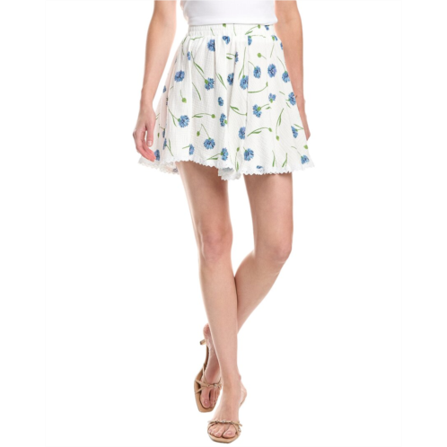 Introducing the Madison Miles Mini Skirt, a stylish addition to your wardrobe. This skirt features a multicolor design with lace trim and an elastic waist for a comfortable fit. Made from 100% cotton, this skirt is perfect for any occasion. The slip-on styling makes it easy to wear, while the approximately 17 inches from waist to hem adds a flattering touch. Hand wash recommended. Imported. Model is 5'9 and is wearing a size small. Measurements may vary slightly by size. Upgrade your look with the Madison Miles Mini Skirt today!